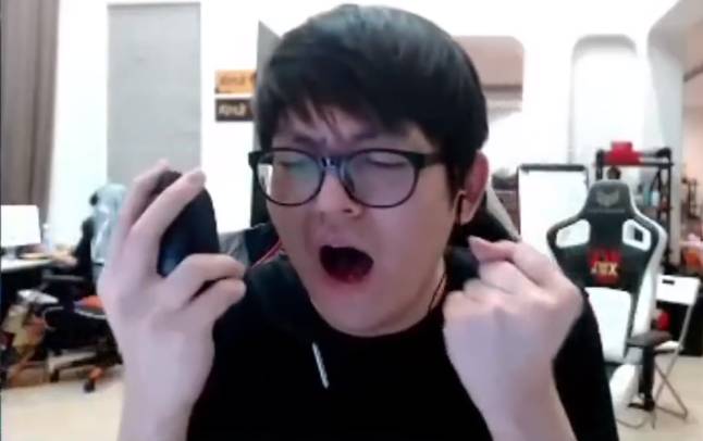 直播吧4月17日讯 在昨日的直播中Gimgoon排位遇到TES下路组合Jackeylove和qiuqiu,前期剑魔遭到针对的贡子哥连连咆哮。
