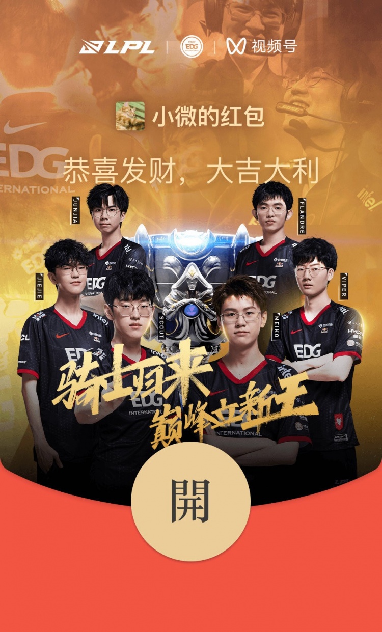 2、回复关键词“EDG夺冠纪念主题红包封面”即可领取【EDGS11夺冠纪念主题红包封面】