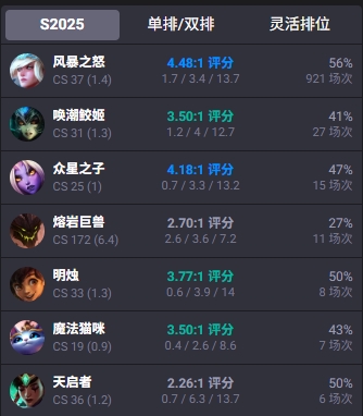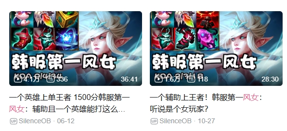 根据数据网站的统计Yxl女朋友专精风女,在操刀的921场高端排位中有56%的不俗胜率,并且B站OB中称其为韩服第一风女。