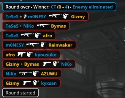 回到长枪局,Gizmy摸K1打掉Niko,Monte转B下包得手,龙哥依旧进单门双杀,Gizmy双门开门双杀龙哥与K3扳平比分。