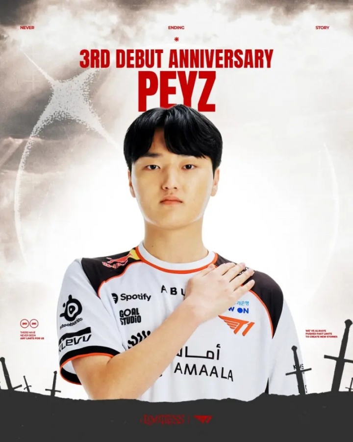 >T1庆祝Peyz出道三周年:恭喜Peyz选手出道三周年!