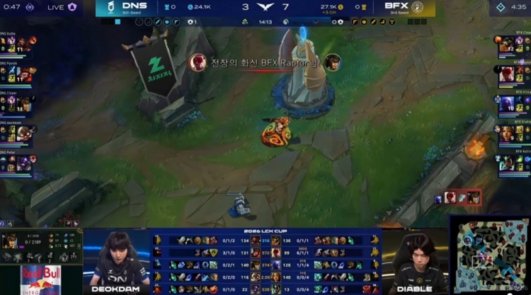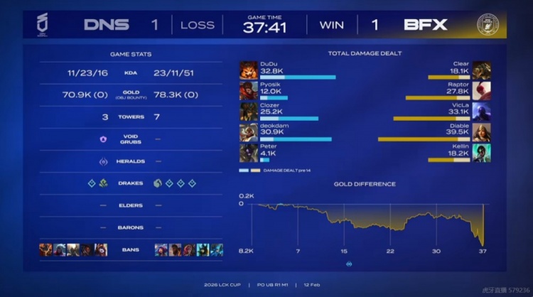 直播吧2月12日讯 2026年LCK杯进入季后赛阶段,首场季后赛的较量将是BFX对阵DNS!