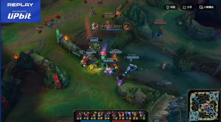 【19:15】BFX拿下小龙,DNS用先锋撞掉了对手中一塔!
