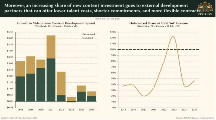 为降低内部成本,越来越多工作室开始选择外包开发流程。这表明在资金收紧的背景下,行业正经历艰难的结构调整,中小团队的生存空间被进一步压缩。