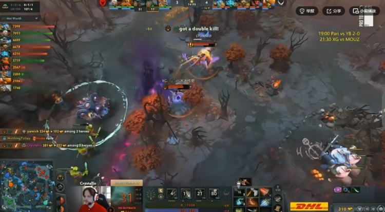 【30分钟】中路团战Crystallis飞机被动,虽然yamich海民第一时间雪球保护,但是Ame凯切入后排分割战场还打满伤害!这波XG击杀对手飞机+人马,打出0换3之后顺势控下二代肉山!Ame凯带盾!MOUZ两人偷掉了30分钟的魔晶!双方经济差现在4K!