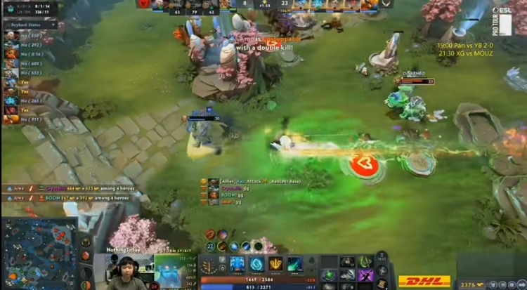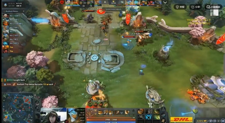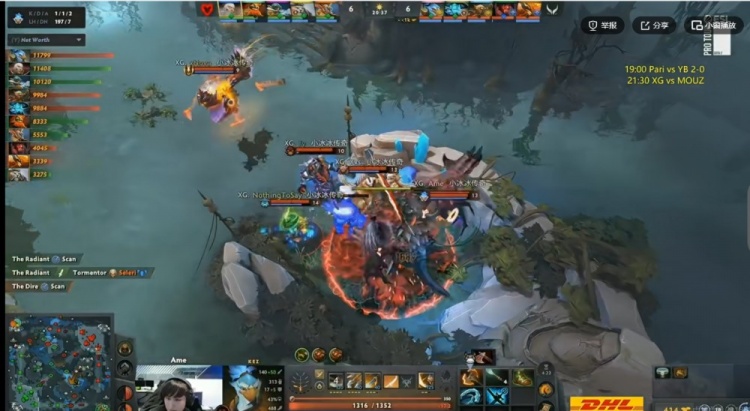 【33分钟】XG中路逮捕了带线的海民之后站上高地先逼出塔防,第一波MOUZ集火Ame凯被他残血开出大招+撒旦吸了回来,正面BOOM马尔斯先倒交出买活,飞机想追残血人马结果被自己海民的冰片封路了!随后Ame凯冲到泉水前强杀Crystallis飞机成功!XG随后转中,第二波XG又找到了MidOne卡尔,在中路打出0换3,拆掉中路高地塔之后撤退!