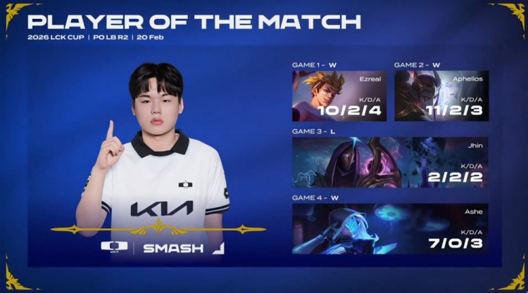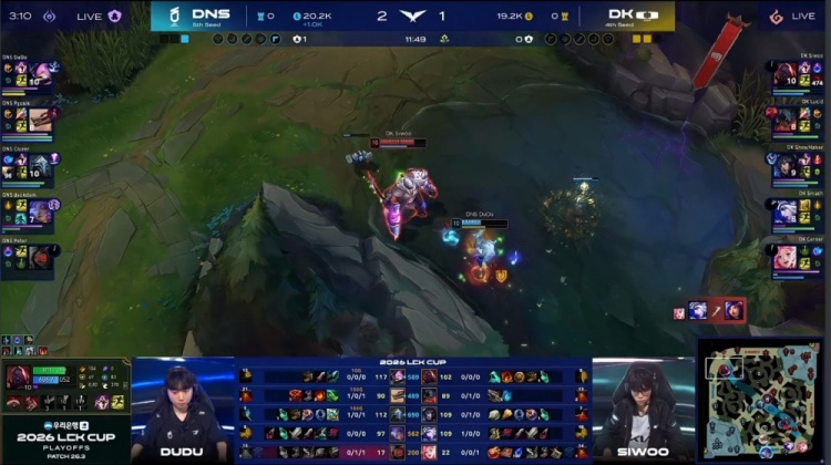 直播吧2月20日讯 2026LCK CUP季后赛败者组第2轮,DK最终3-1战胜DNS,晋级下一轮对阵T1!