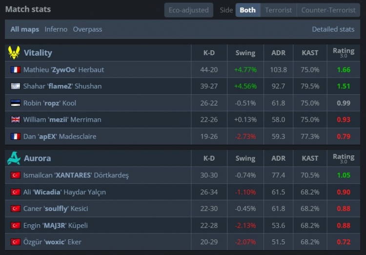 Vitality:mezii、apEX、ropz、flameZ、ZywOo