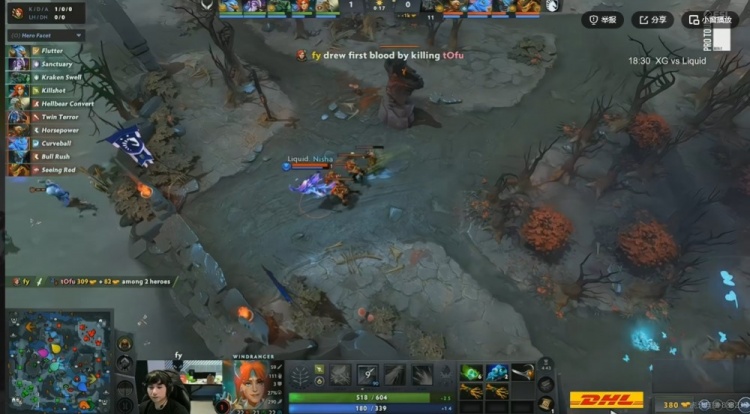 天辉XG:Fy风行者、xNova陈、Ame凯、NothingToSay虚无之灵、Xxs潮汐猎人