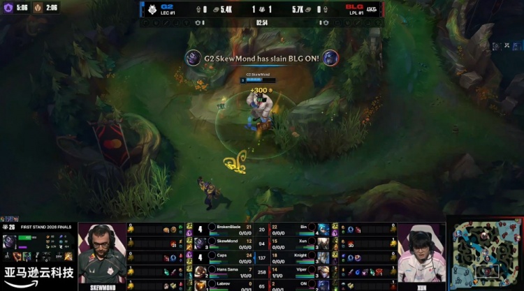 直播吧3月22日讯 2026全球先锋赛决赛,由BLG对阵G2!