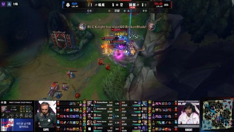 第一局:🎮有人hide!knight遭Caps暴打 Viper&Bin纷纷同意 G2赢首局