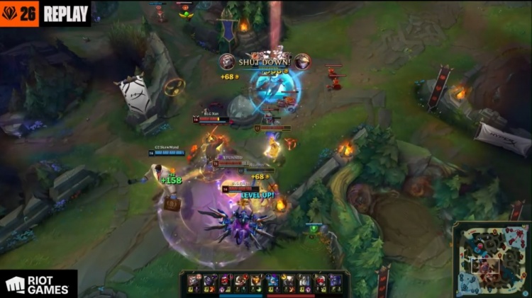 【30:18】Labrov上河道做视野又被Xun潘森跳大抓掉,后者研发i6。