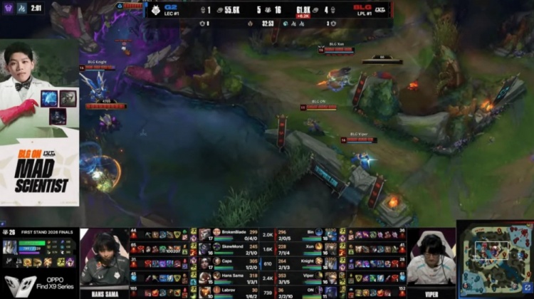 BLG对阵G2第二局,官方分享ON的英雄选择并配文“疯狂科学家”。