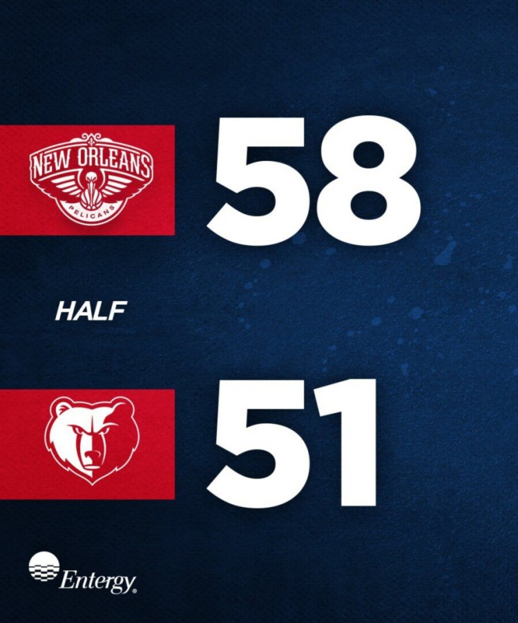 第二节回来,两队首先在三分线外对飙得分,锡安利用强劲的身体不断完成强攻,鲍尔一记三分中的后鹈鹕39-28领先到两位数。瓦兰丘纳斯强打内线造成2+1,阿伦弹无虚发又是命中两个三分缩小分差,雷迪克空切放篮止血,接着哈特连续打成反击再次拉开比分,莫兰特和英格拉姆各自用单打帮助球队拿分,场上比分55-45仍旧是鹈鹕领先。贾伦-杰克逊连投带罚追回4分,霍勒迪快下上篮打成2+1,阿伦抢攻抛投命中,半场结束,灰熊51-58落后鹈鹕。