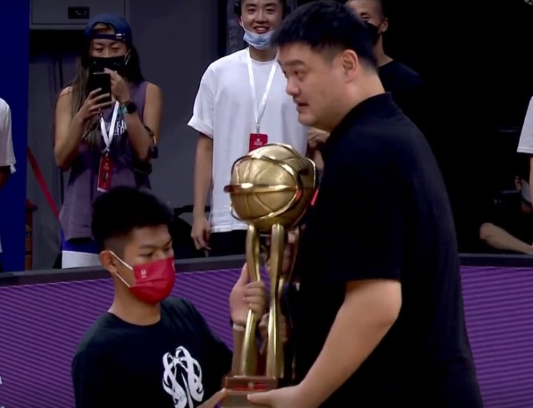 赛后,中国篮协主席姚明分别为男子组冠军石家庄二中和女子组冠军清华附中颁奖。