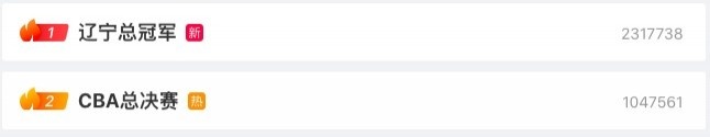 赛后“辽宁总冠军、CBA总决赛”词条冲上微博热搜前二