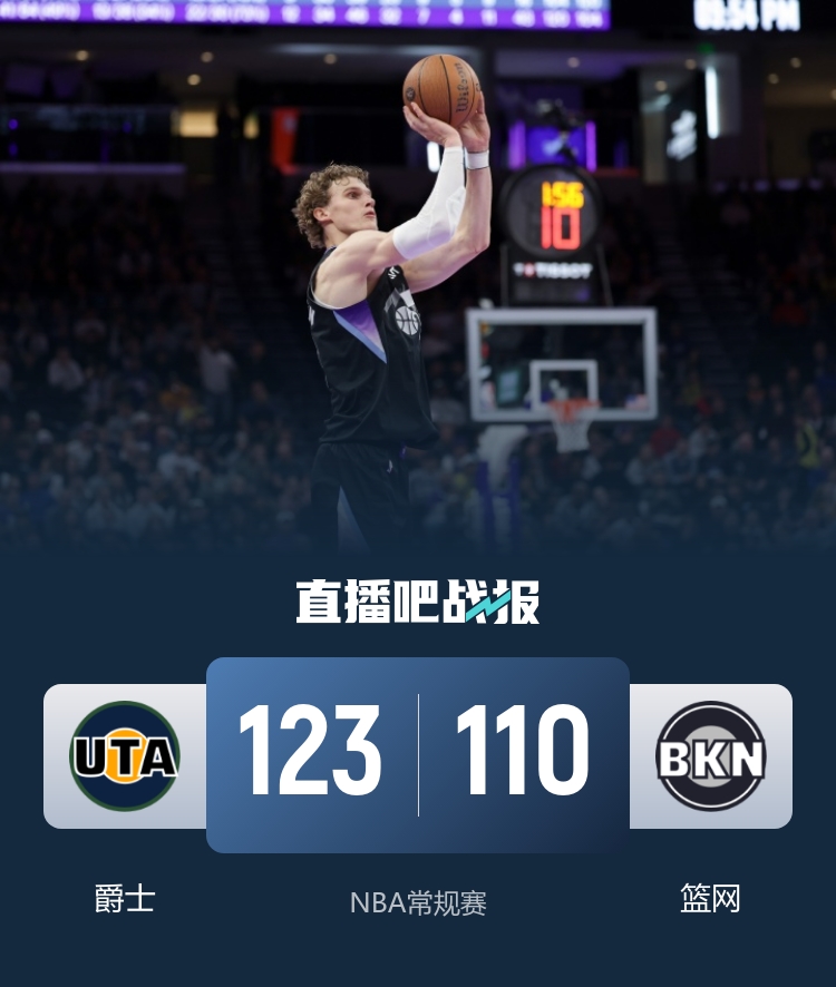 爵士(8-13):马尔卡宁30分8板1助、乔治29分5板10助、菲利波夫斯基15分8板5助2断、克莱顿13分3板3助、米哈伊柳克10分3板3助、李凯尔8分5板3助4断、森萨博8分3板3助、贝利5分2板、科利尔3分1板3助、亨德里克斯2分1板