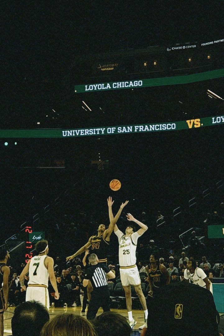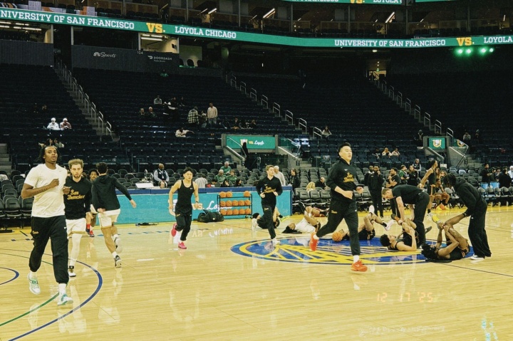 旧金山——当地时间12月17日,旧金山大学男子篮球队在大通中心迎战来自芝加哥的洛约拉大学。这也是球队在 2025-26赛季首次在大通中心出战。