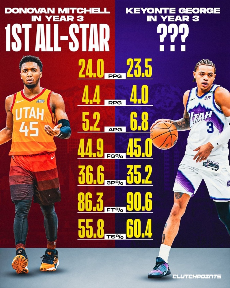 不相上下!基昂特·乔治生涯第3年和米切尔生涯第3年数据对比!