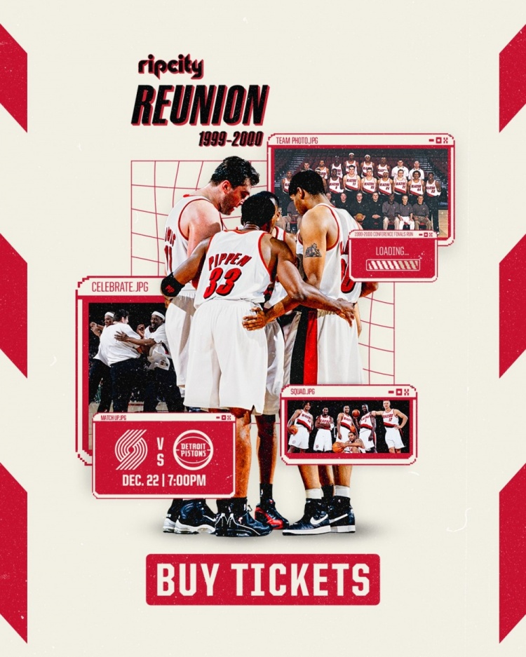 直播吧12月19日讯 开拓者官方表示,在12月23日,主场迎战底特律活塞的比赛中,球队将会邀请99-2000赛季的开拓者队成员回到主场参加相关活动。