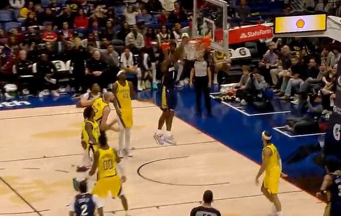 >随便扣!锡安持球突破到篮下 空无一人双手轻松扣空篮!