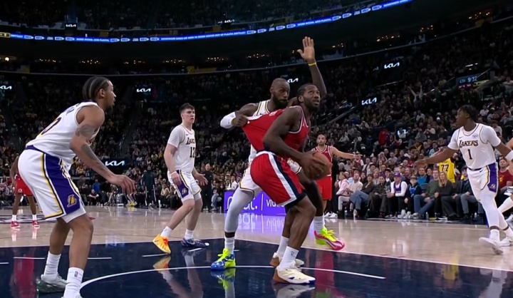 >燃尽了!詹姆斯切球小卡 随后倒地拼抢顺势叫出暂停!