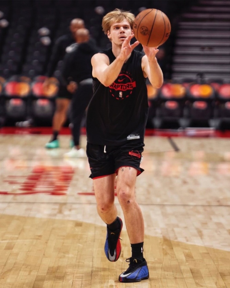 直播吧12月21日讯 球鞋博主Conkeror晒照,猛龙球员迪克在今天和凯尔特人的比赛中,上脚了一双母校堪萨斯大学的AE 2 PE。