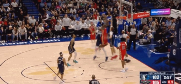 状元对决!锡安接球起飞 空中晃过浓眉与弗拉格轻巧上篮得分!