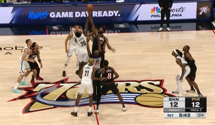 76人这边恩比德出战跳球!赛季初期76人一度让乌布雷去参加跳球!
