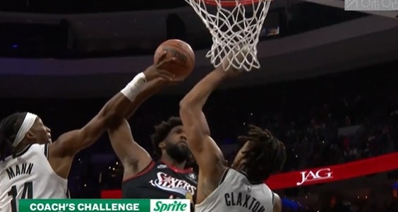 干干净净!恩比德欲隔扣造杀伤 篮网挑战成功改吹好帽