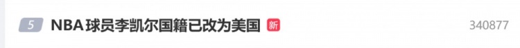 一时间,“NBA球员李凯尔国籍已改为美国”词条冲上了微博热搜榜第五位。