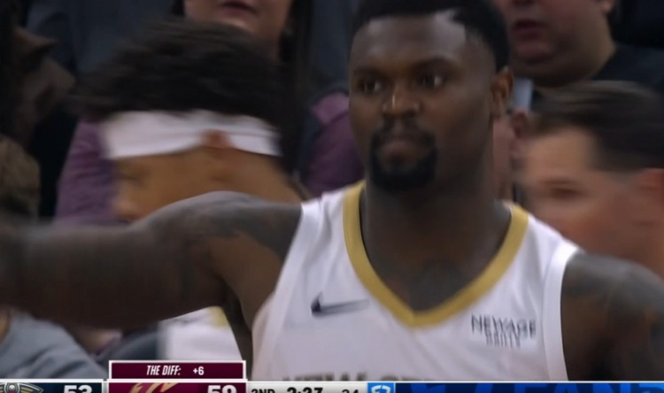 >骑士三分不中 锡安早已快下接队友长传篮下再打2+1