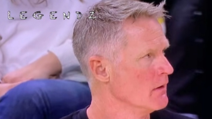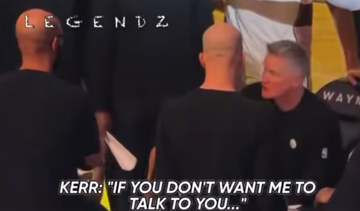 追梦下场前一直在抱怨裁判判罚,科尔在场下让追梦专注比赛但后者视而不见,科尔连续摇头表达沮丧。