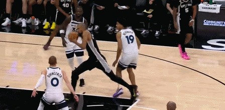 够恐怖的!文班亚马罚球弧上下步一步跨到篮下舔篮得分