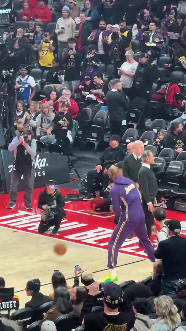 >找找感觉!湖人VS开拓者赛前热身环节 詹姆斯猛练底角三分