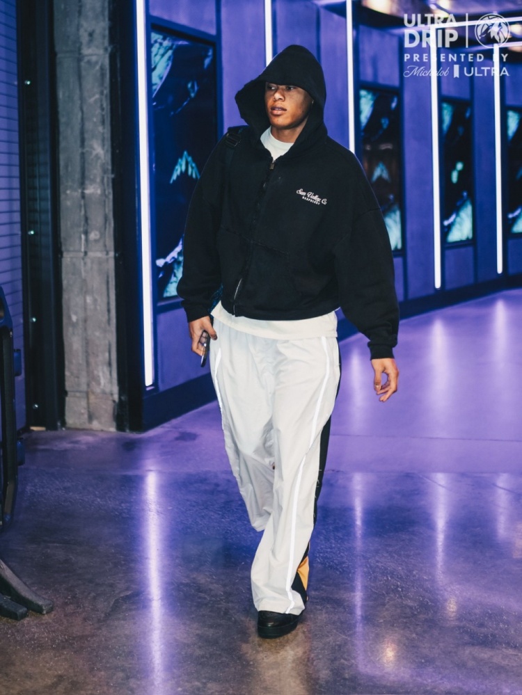 森林狼众将穿搭:里德绒帽一戴配迷彩套装 化身球队本体