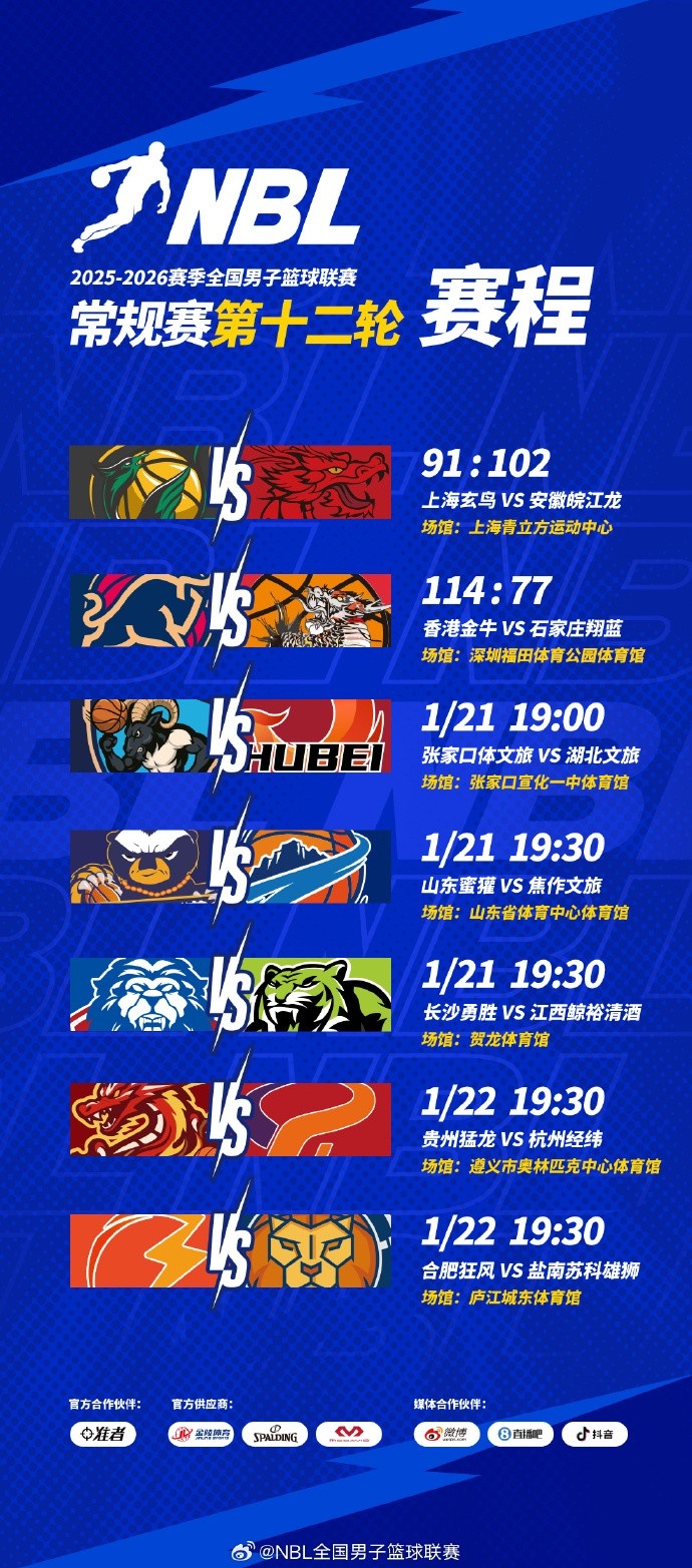 NBL常规赛第十二轮结束了首日较量,今天还将进行三场比赛!