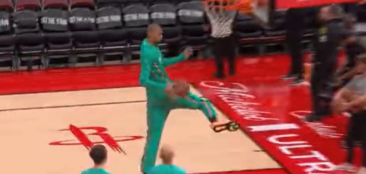 都去讨论扣坏篮筐了~仔细一看文班这个轻松的热身扣篮也挺离谱的