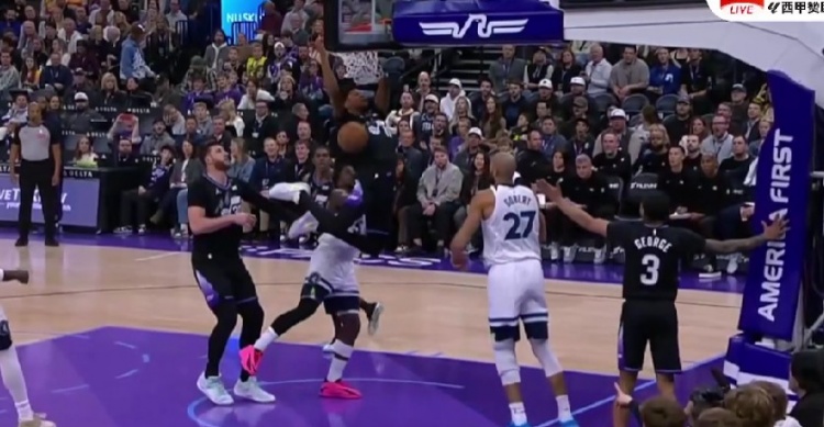 >黄雀在后!戈贝尔钉板大帽拒绝乔治 贝利飞身补扣气势十足