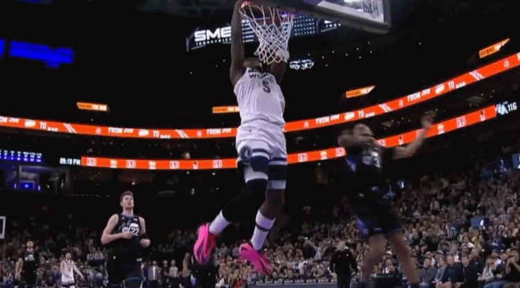 >挺身而出!爱德华兹防守端干扰对方三分 反击折叠暴扣2+1打回悬念