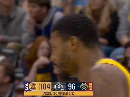 >掘金五分钟没得分了!斯玛特底角三分再中 湖人一波12-0