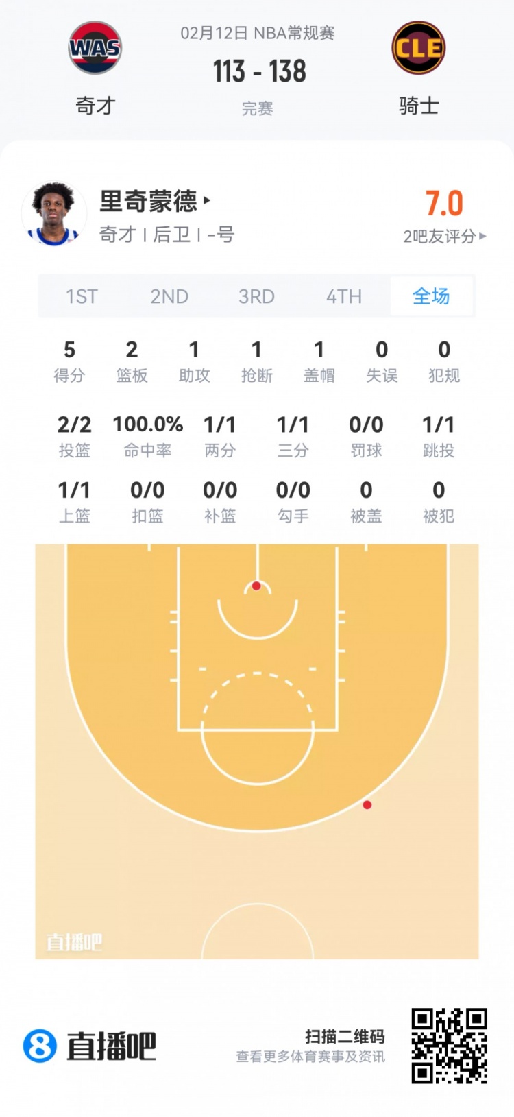 奇才落选秀凯达里·里奇蒙德 登场6.1分钟