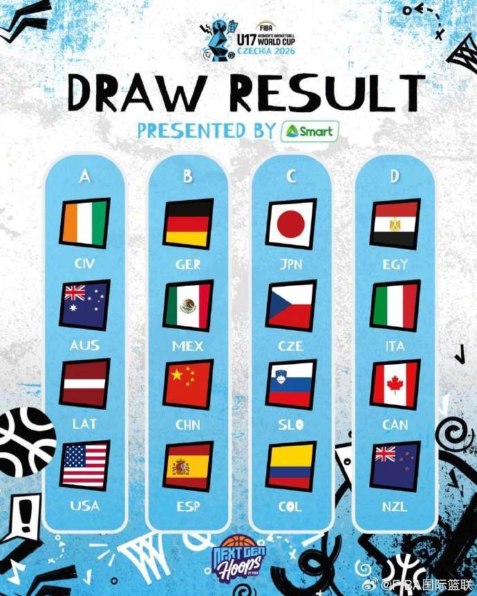 直播吧2月12日讯 2026FIBAU17女篮世界杯抽签结果出炉,中国队进入B组,同组的还有德国、墨西哥、西班牙。
