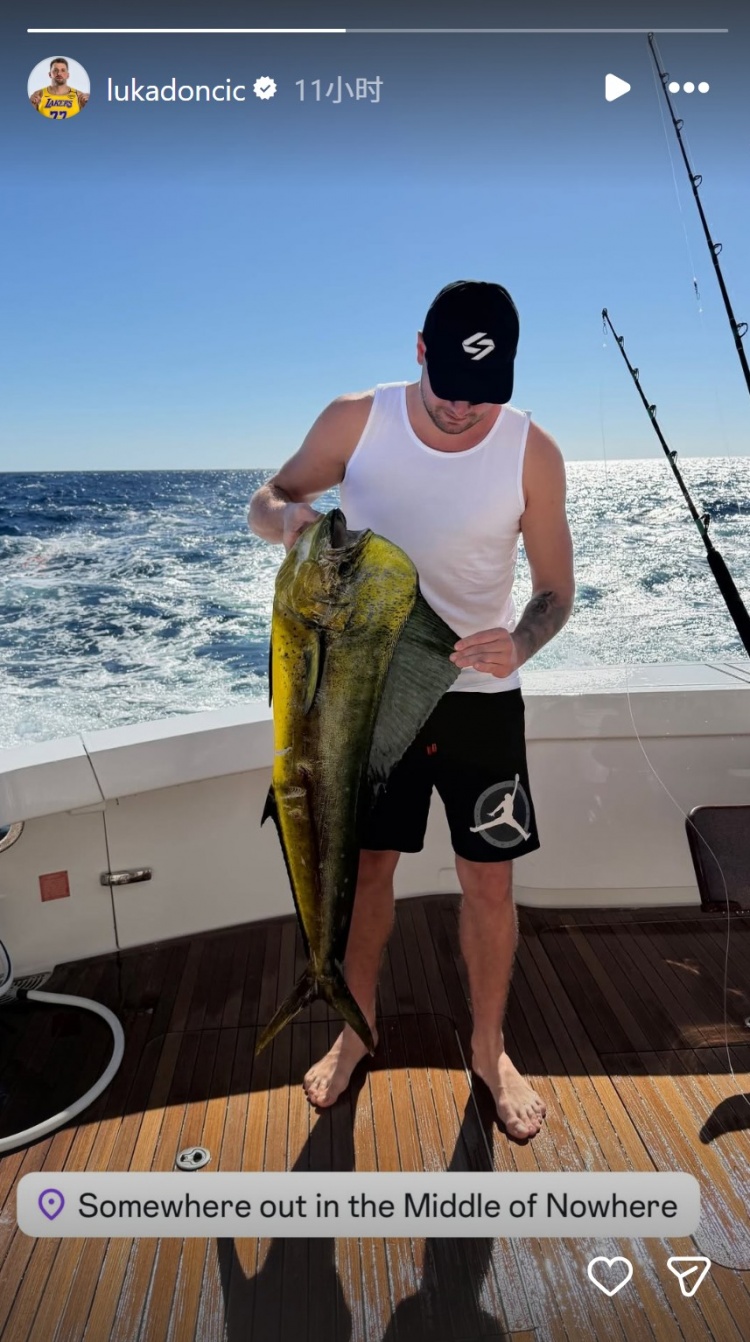 >短暂假期~东契奇INS晒大海中钓鱼照片:远离尘嚣的某个地方