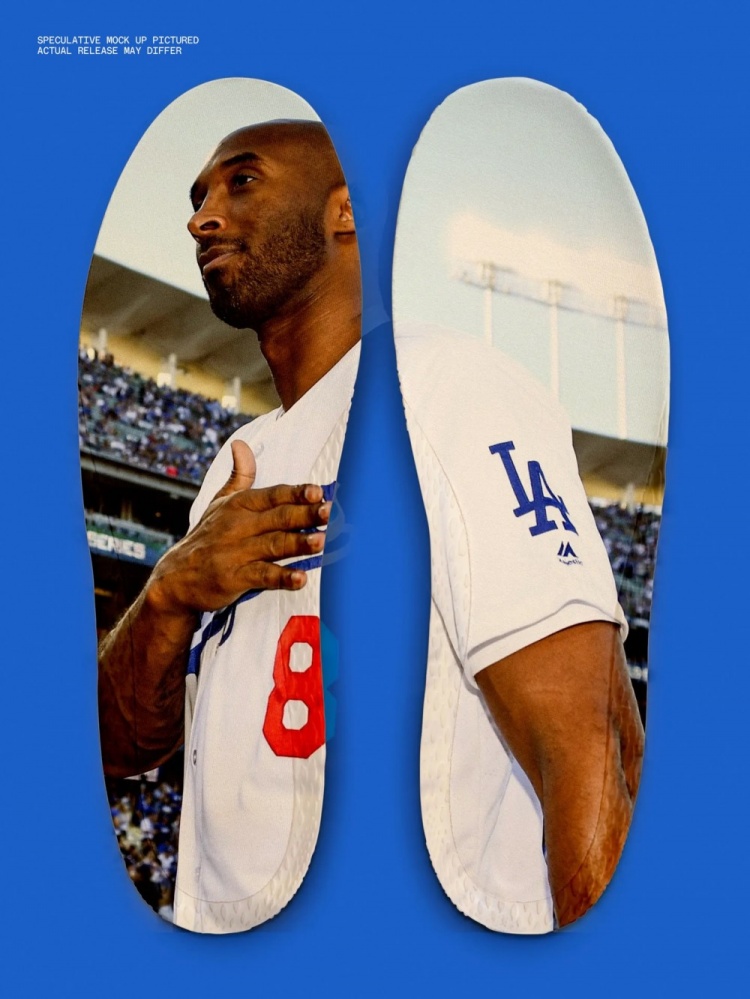 鞋垫预计将印有科比在2018年10月27日最后一次公开造访道奇球场的影像——这一瞬间因道奇队近期的总冠军而更具意义。