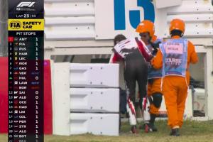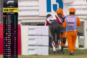 吓人!F1日本站垫赛发生严重事故,赛车腾空翻滚飞出赛道护栏外