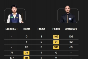 庞俊旭1-4不敌凯伦·威尔逊,无缘斯诺克苏格兰公开赛16强