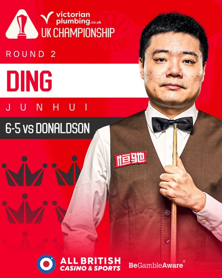 直播吧12月05日讯 2025年斯诺克英锦赛16进8轮次,中国选手丁俊晖经过11局较量,以6-5战胜唐纳森,晋级赛事八强。