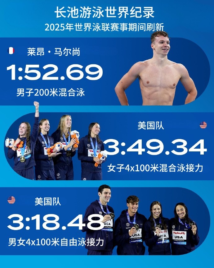 直播吧12月13日讯 世界泳联官方盘点了2025年世界泳联赛事中刷新的长池游泳世界纪录,选手们共刷新了3项世界纪录。