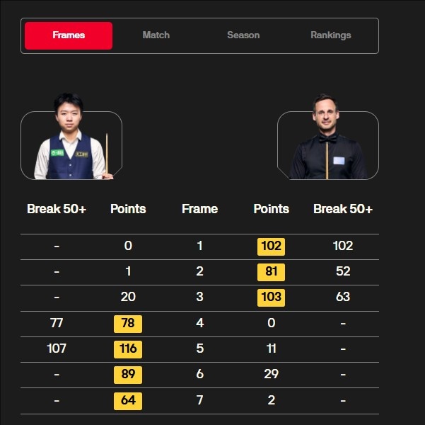 江俊打出单杆77、107分,大卫·吉尔伯特打出单杆102、52、63分,双方战至决胜局,最终江俊4-3战胜大卫·吉尔伯特晋级16强。